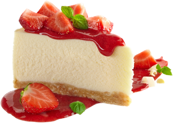 Crema di formaggio, biscotti di pasta frolla, burro, zucchero, uova, panna, estratto di vaniglia, fragole fresche, salsa di fragole